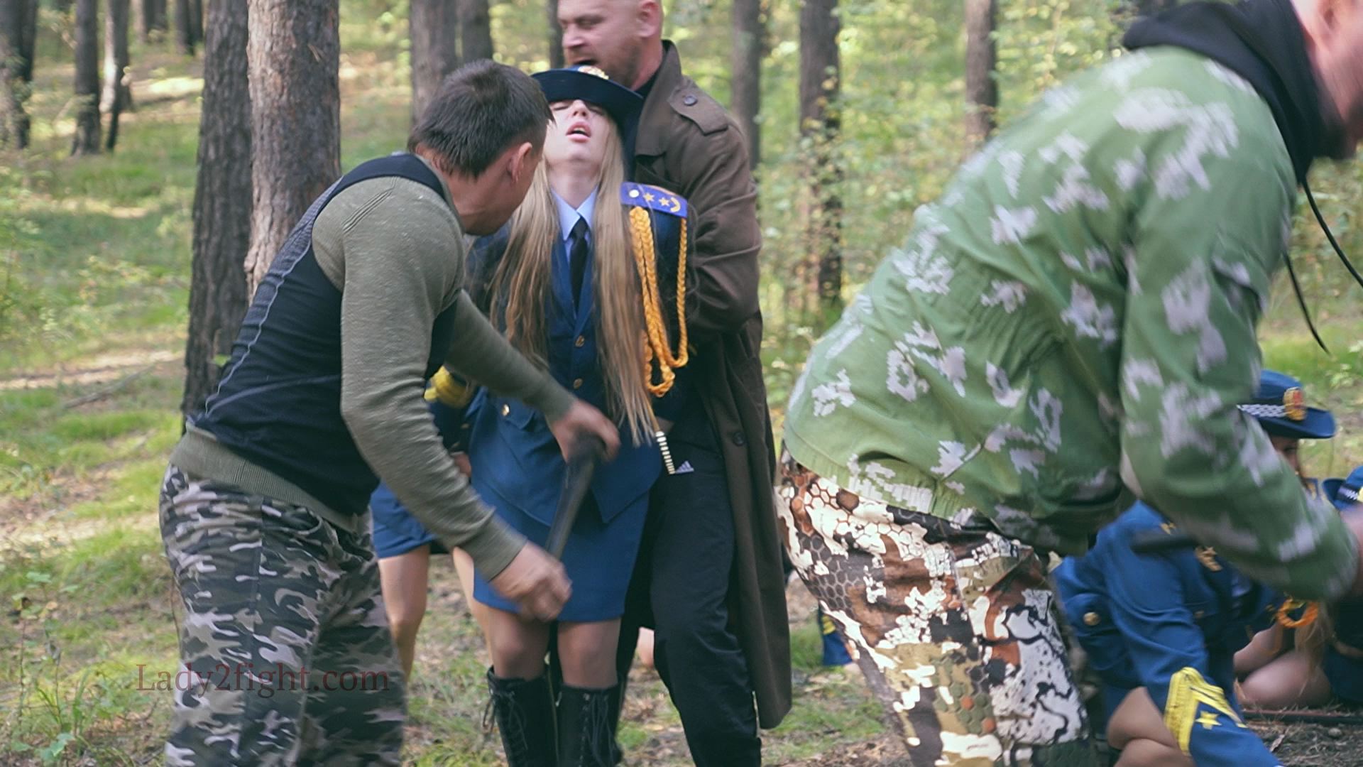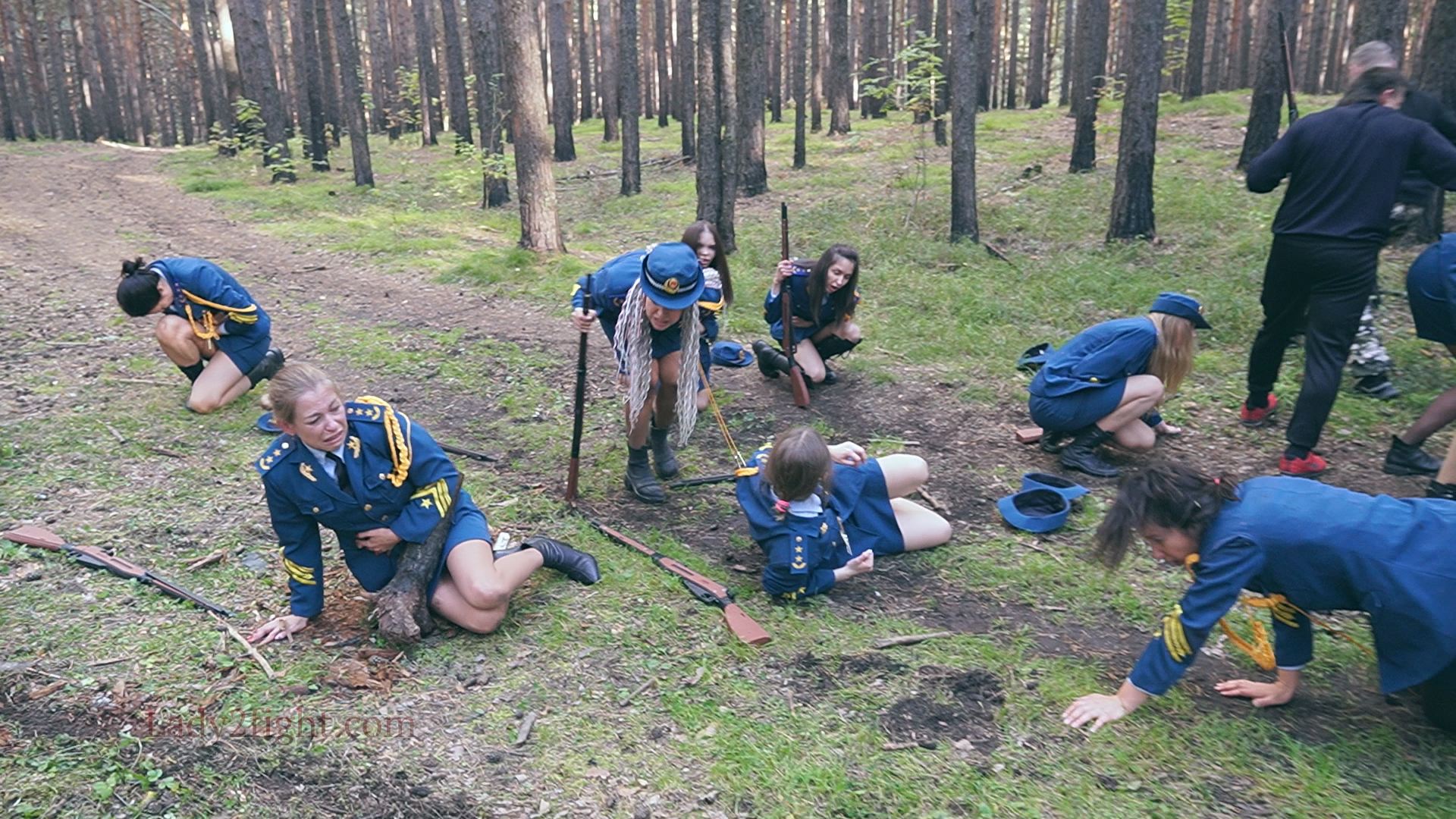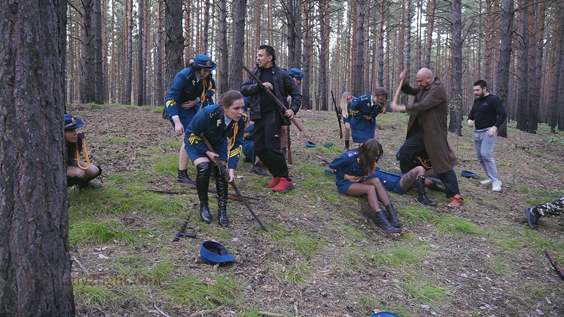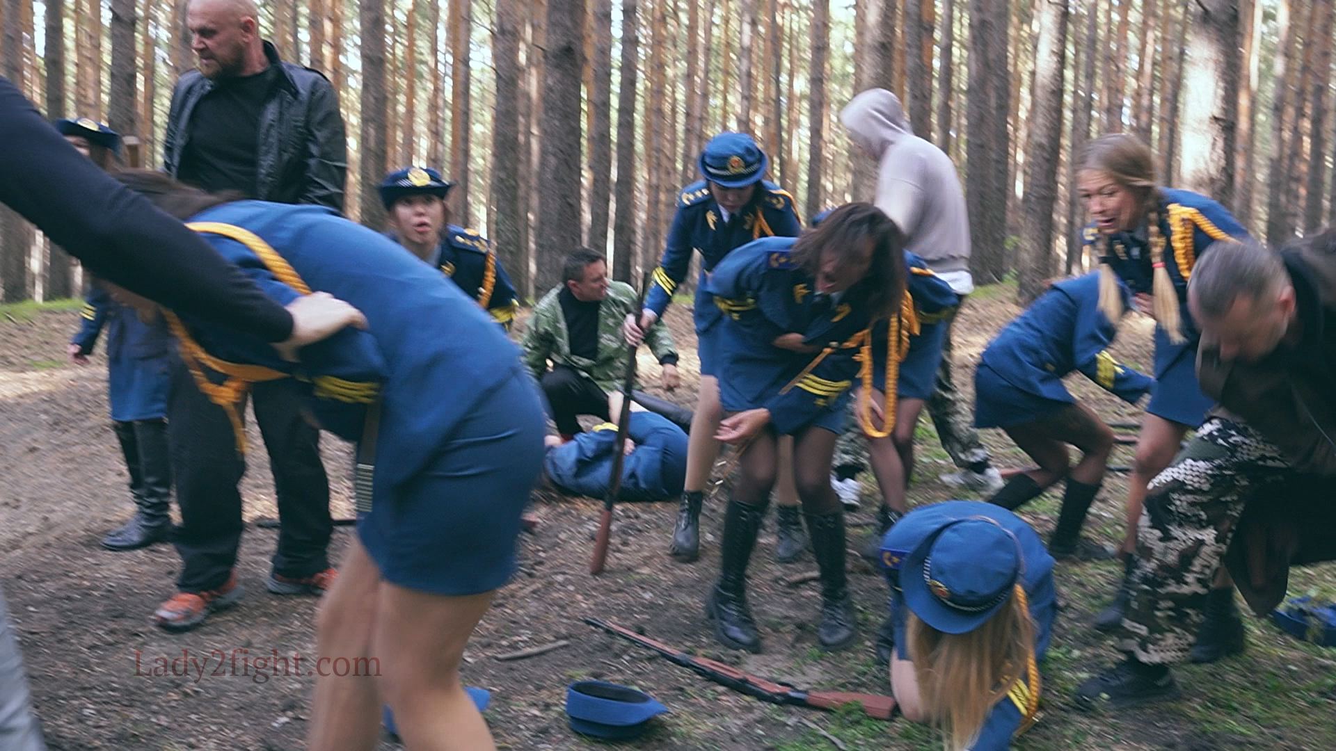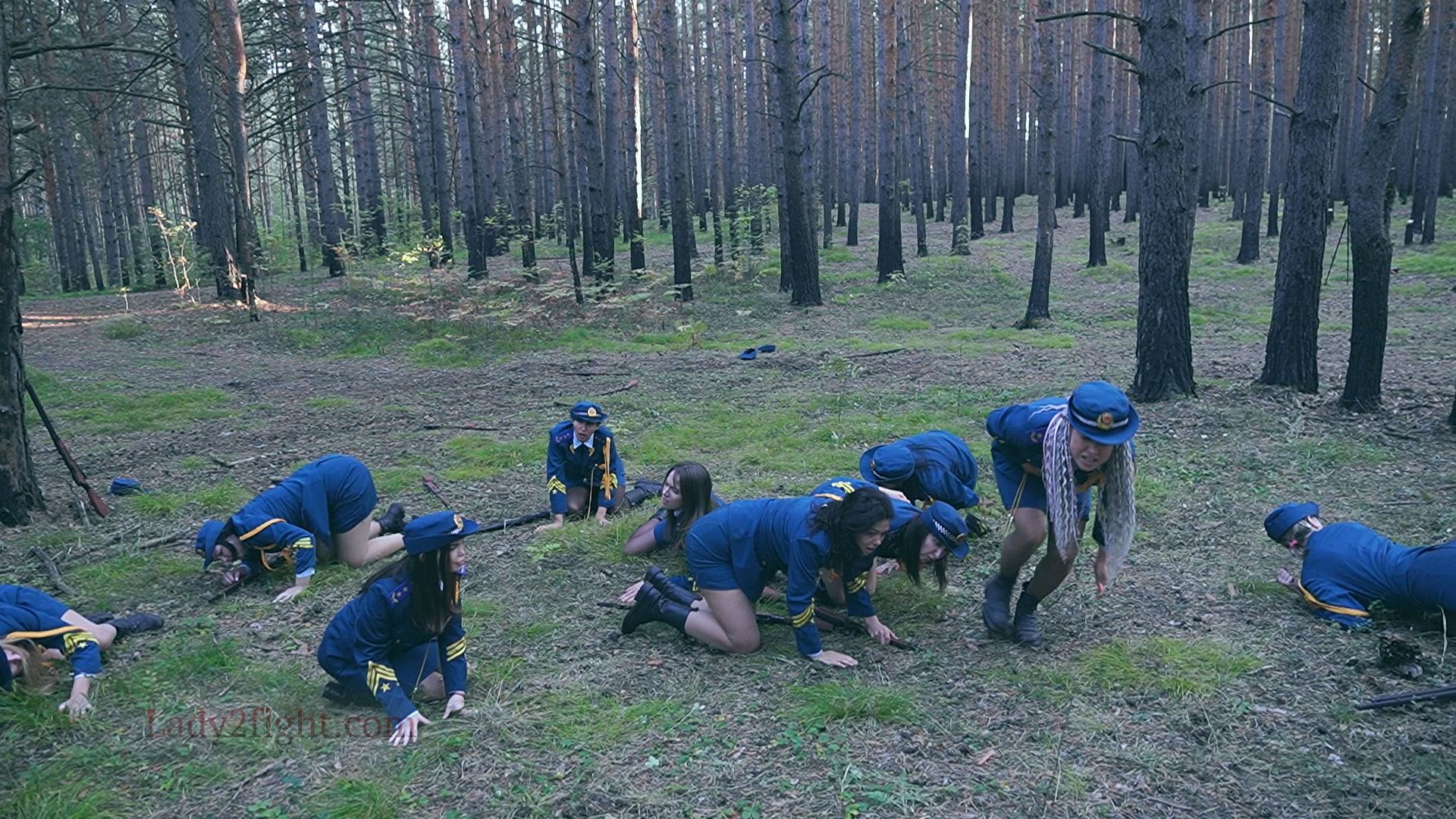 Lora, Luna, Michelle, and their fellow women soldiers march with pride—unaware they’re being led into a deadly trap. Outnumbered and outmatched, the squad faces a brutal ambush where every shot and strike is aimed at their stomachs. One by one, the women fall to relentless melee attacks, their courage crushed beneath the enemy’s strength. With no reinforcements to save them, the brave troops are left broken and defeated, their army wiped out in a devastating rout. The video is divided into several battle stories, with one scene recreating the Mohicans ambush shot-for-shot.