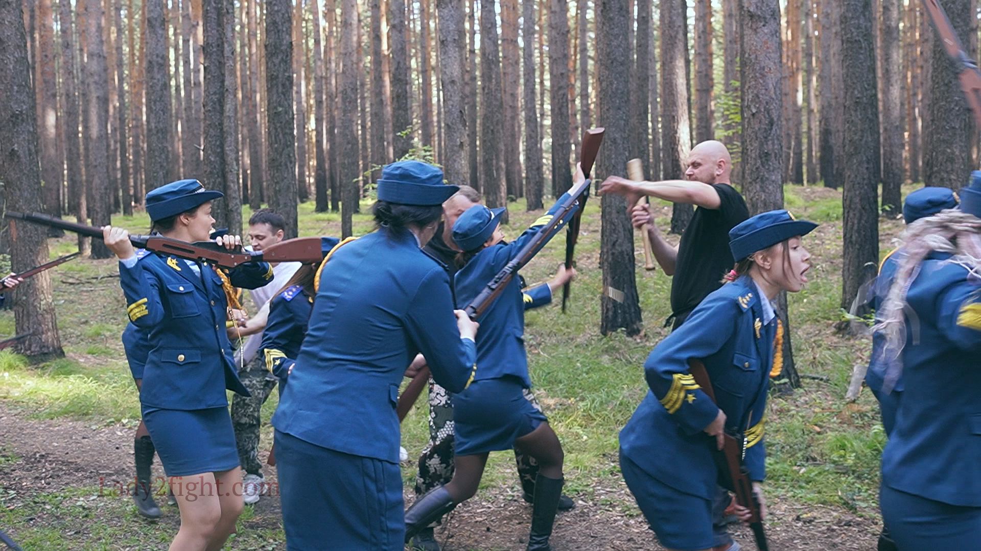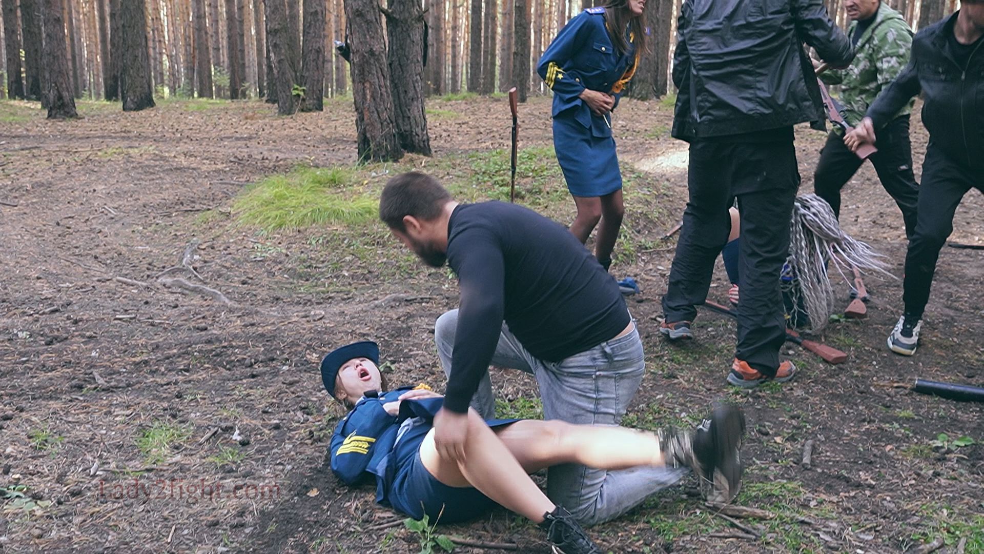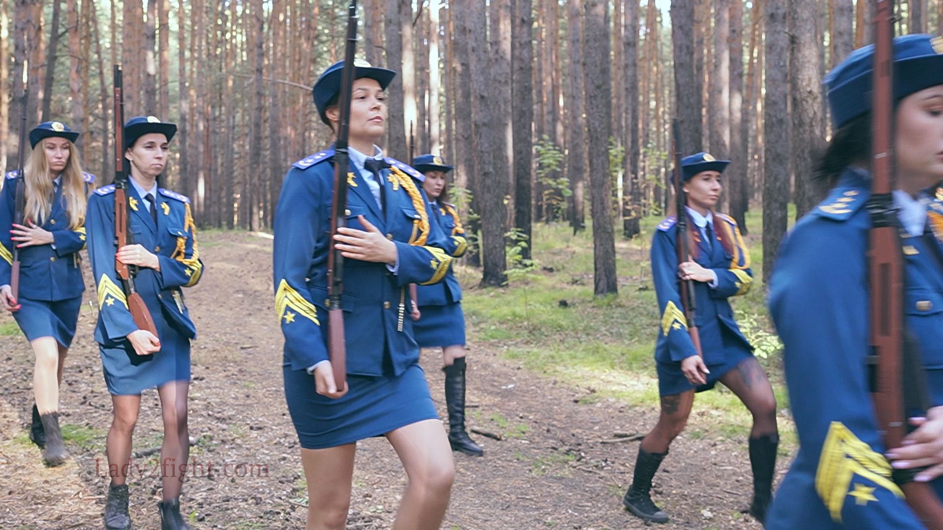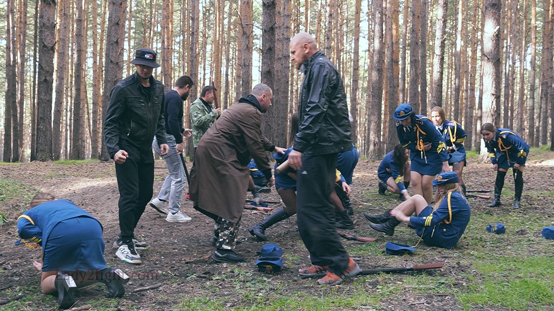 Lora, Luna, Michelle, and their fellow women soldiers march with pride—unaware they’re being led into a deadly trap. Outnumbered and outmatched, the squad faces a brutal ambush where every shot and strike is aimed at their stomachs. One by one, the women fall to relentless melee attacks, their courage crushed beneath the enemy’s strength. With no reinforcements to save them, the brave troops are left broken and defeated, their army wiped out in a devastating rout. The video is divided into several battle stories, with one scene recreating the Mohicans ambush shot-for-shot.
