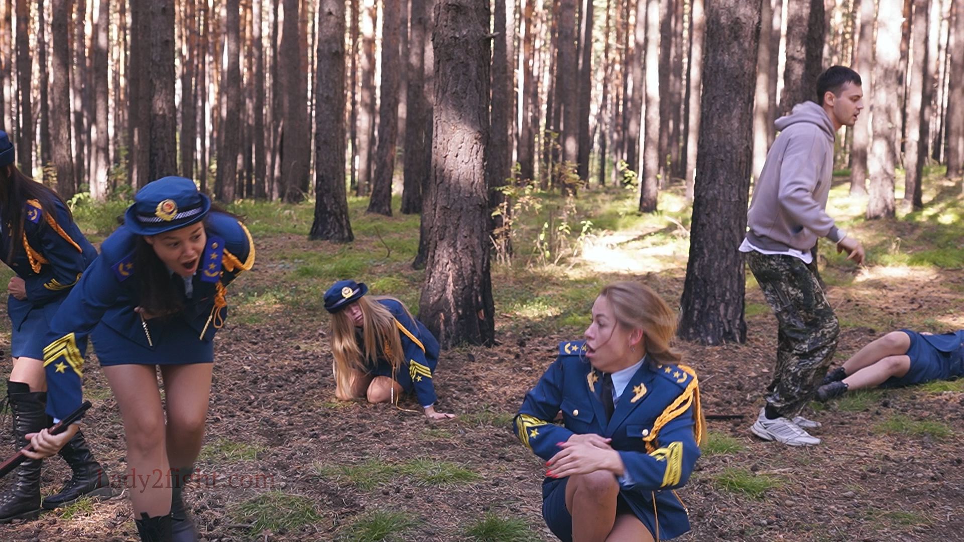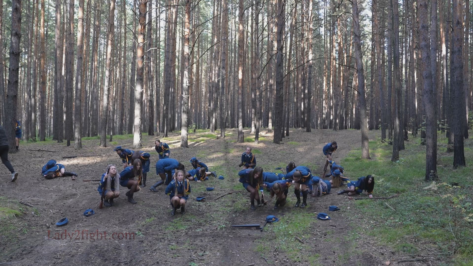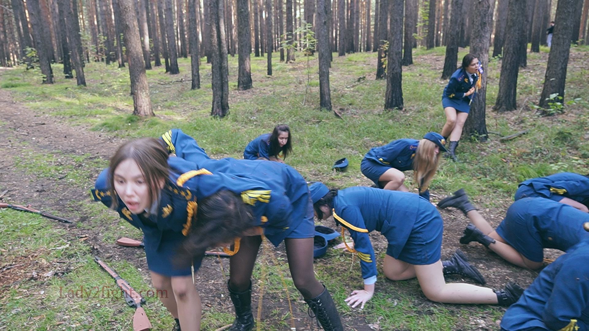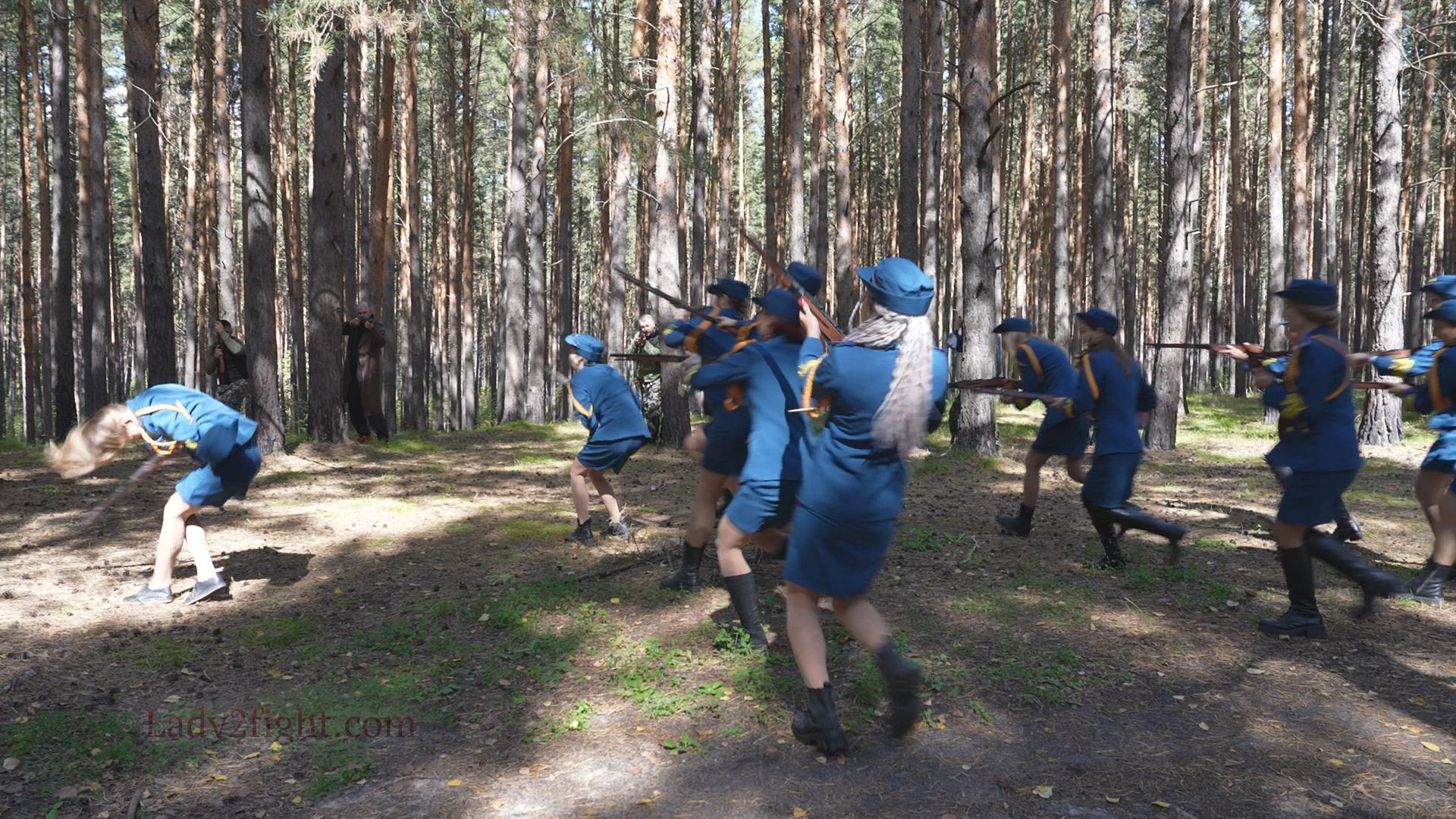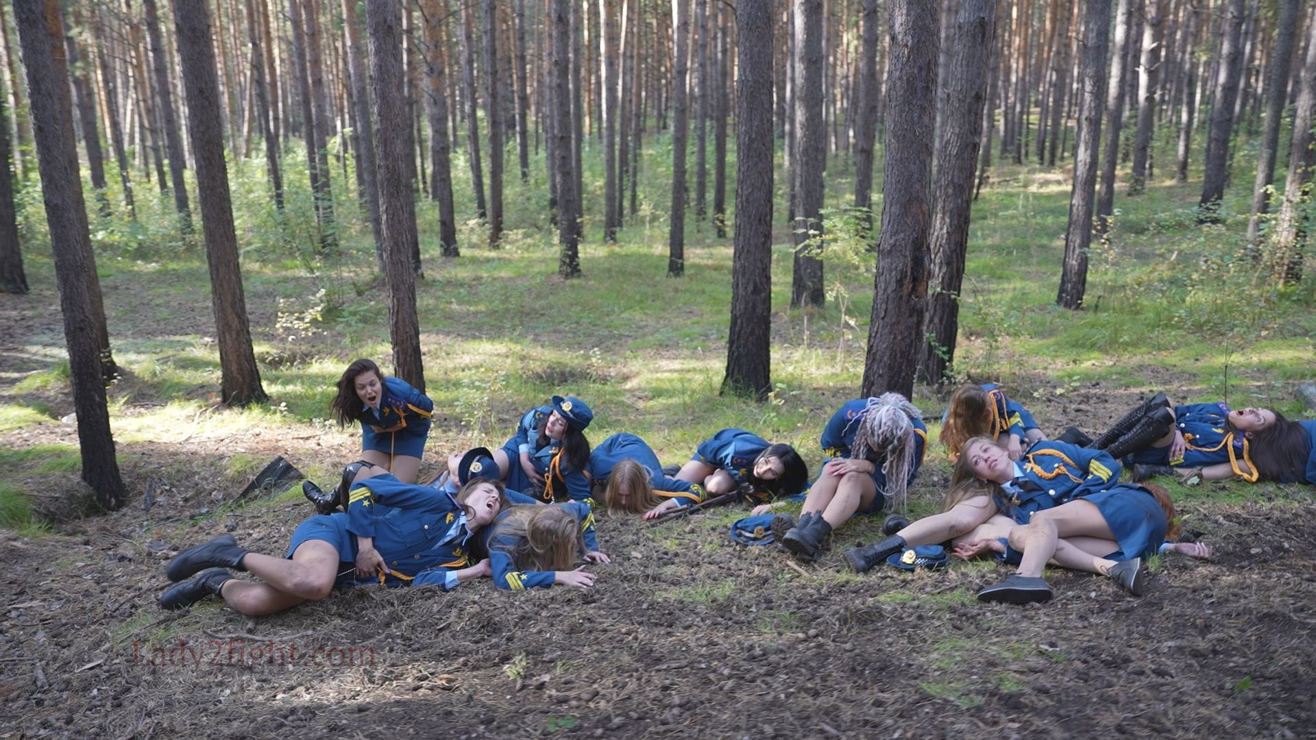 Lora, Luna, Michelle, and their fellow women soldiers march with pride—unaware they’re being led into a deadly trap. Outnumbered and outmatched, the squad faces a brutal ambush where every shot and strike is aimed at their stomachs. One by one, the women fall to relentless melee attacks, their courage crushed beneath the enemy’s strength. With no reinforcements to save them, the brave troops are left broken and defeated, their army wiped out in a devastating rout. The video is divided into several battle stories, with one scene recreating the Mohicans ambush shot-for-shot.