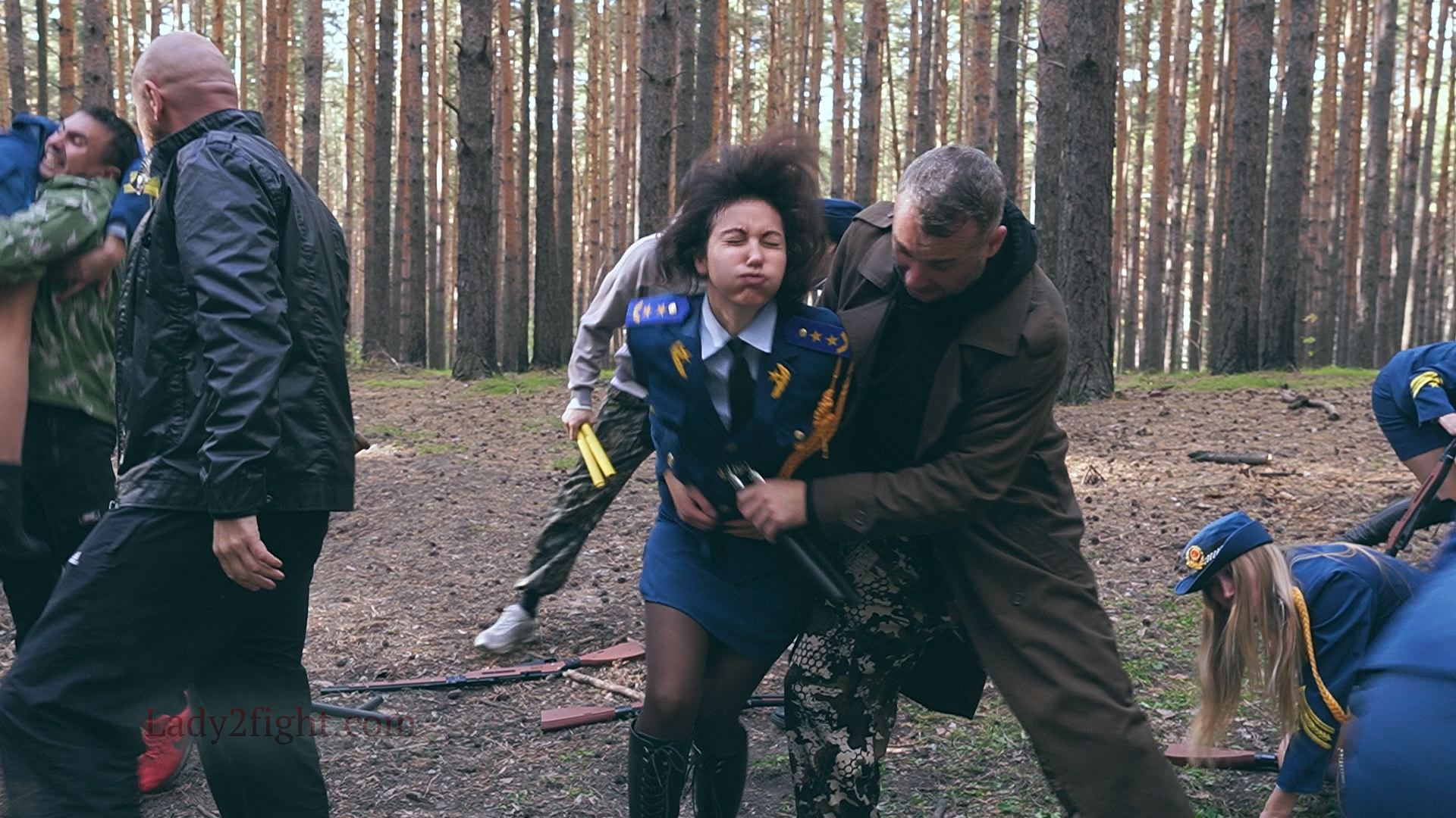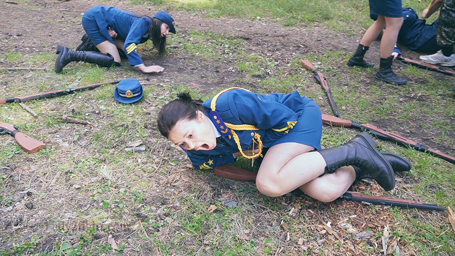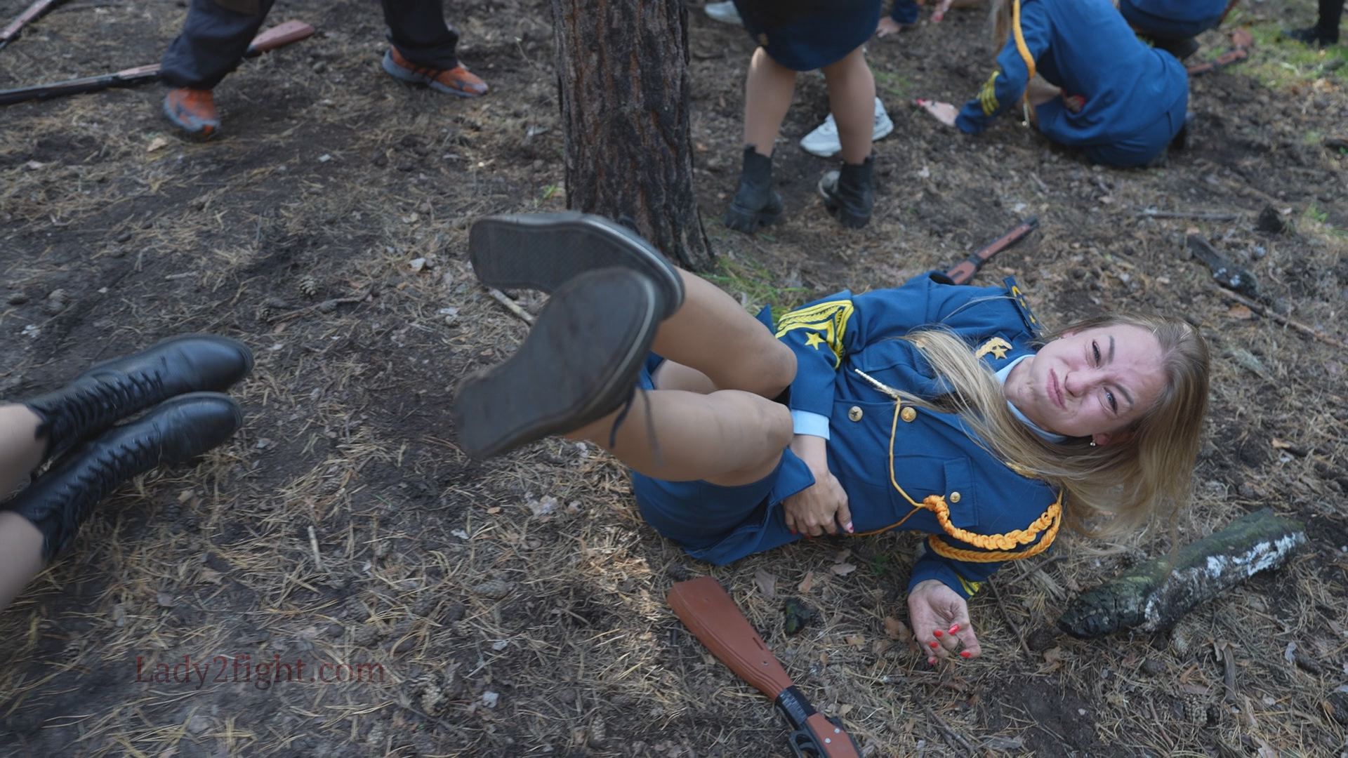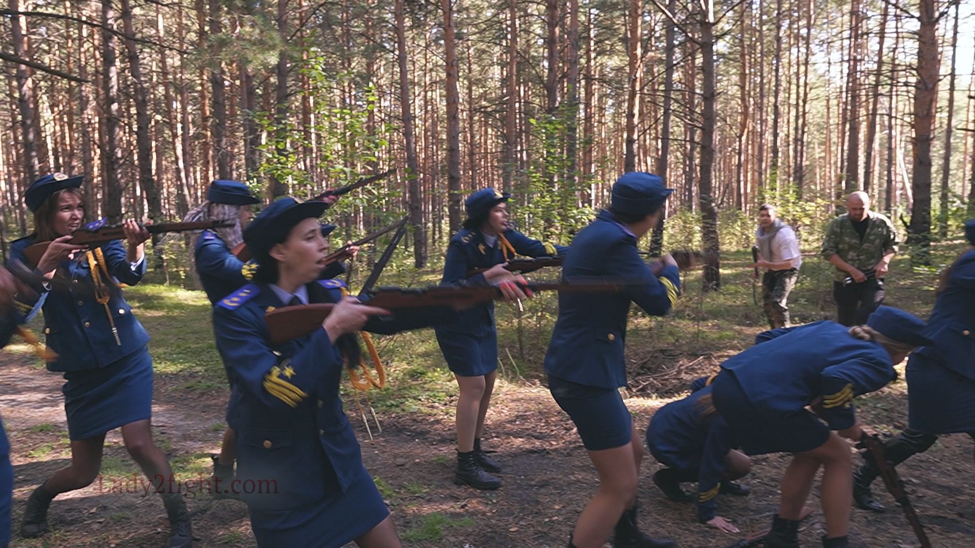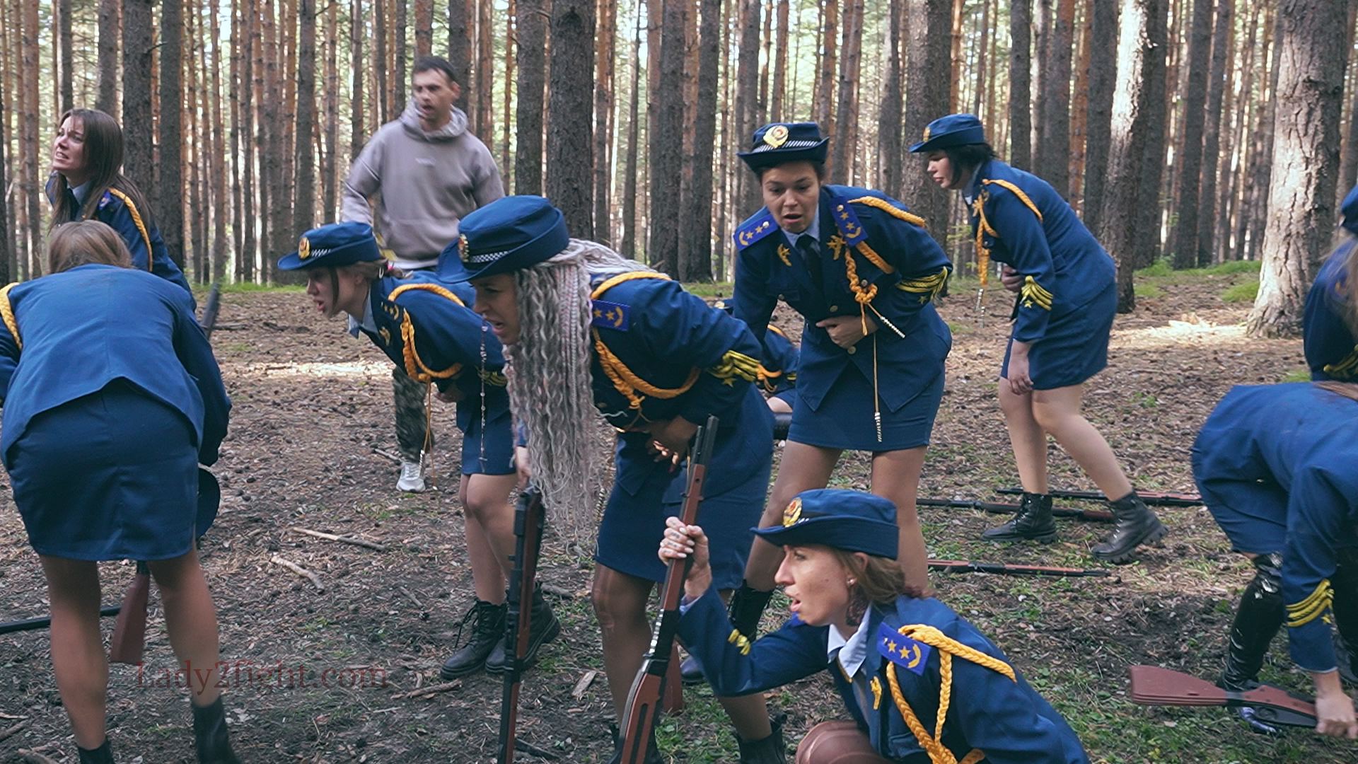 Lora, Luna, Michelle, and their fellow women soldiers march with pride—unaware they’re being led into a deadly trap. Outnumbered and outmatched, the squad faces a brutal ambush where every shot and strike is aimed at their stomachs. One by one, the women fall to relentless melee attacks, their courage crushed beneath the enemy’s strength. With no reinforcements to save them, the brave troops are left broken and defeated, their army wiped out in a devastating rout. The video is divided into several battle stories, with one scene recreating the Mohicans ambush shot-for-shot.