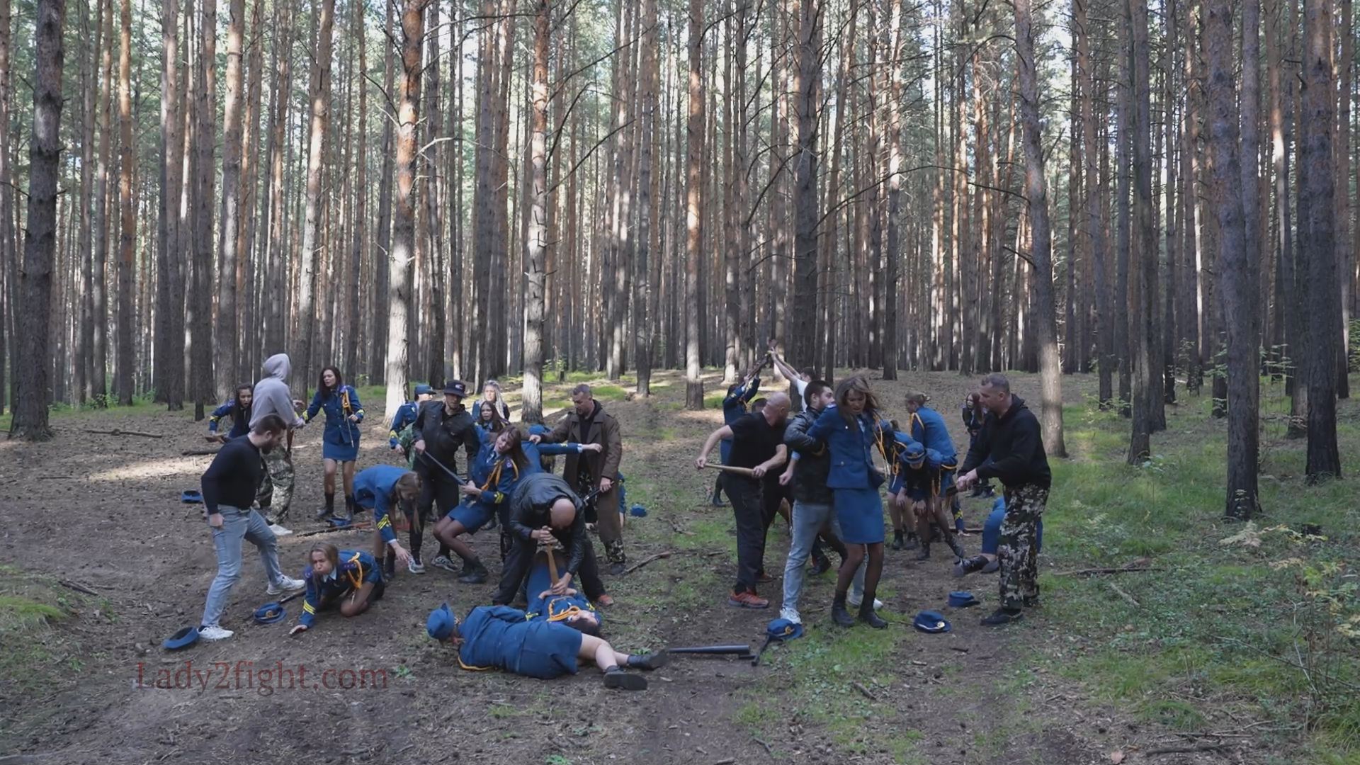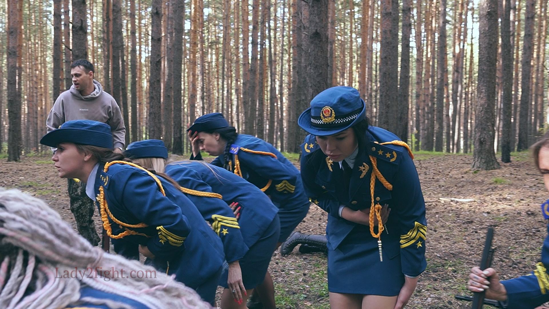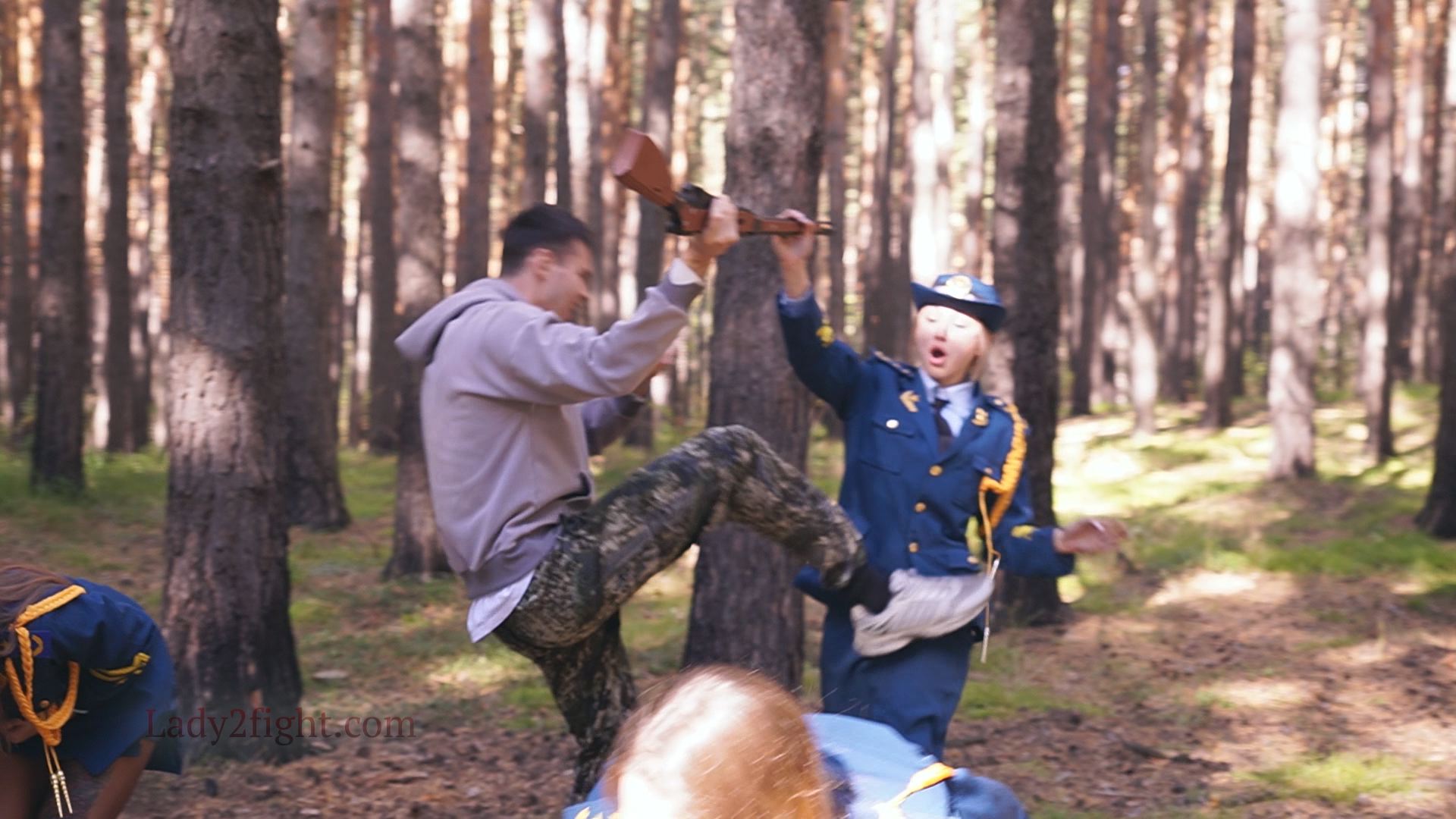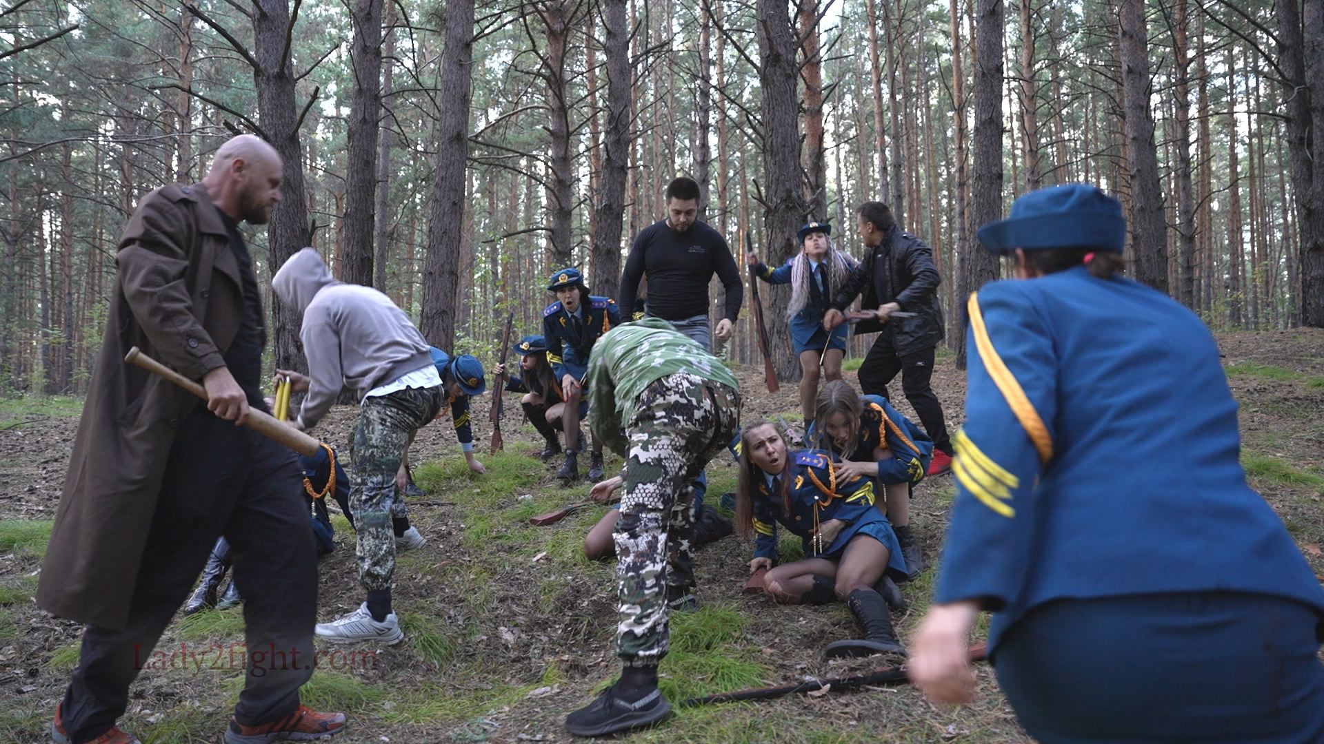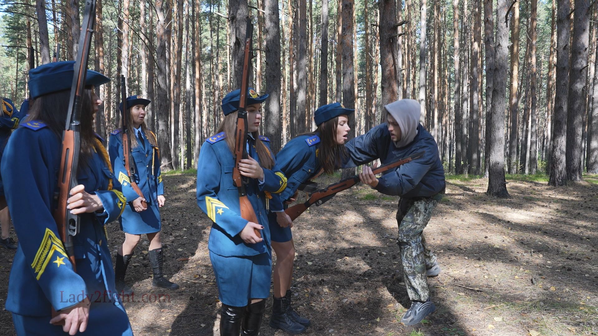 Lora, Luna, Michelle, and their fellow women soldiers march with pride—unaware they’re being led into a deadly trap. Outnumbered and outmatched, the squad faces a brutal ambush where every shot and strike is aimed at their stomachs. One by one, the women fall to relentless melee attacks, their courage crushed beneath the enemy’s strength. With no reinforcements to save them, the brave troops are left broken and defeated, their army wiped out in a devastating rout. The video is divided into several battle stories, with one scene recreating the Mohicans ambush shot-for-shot.