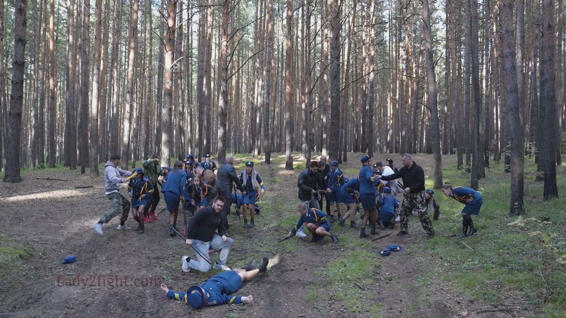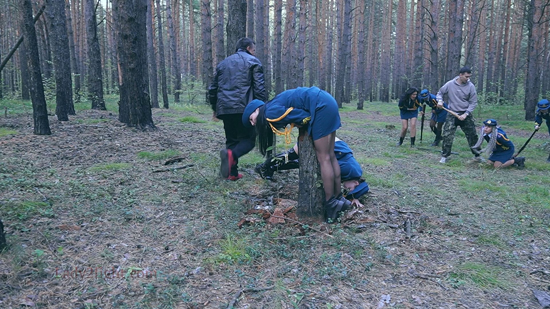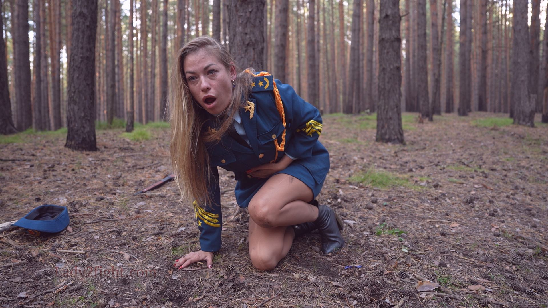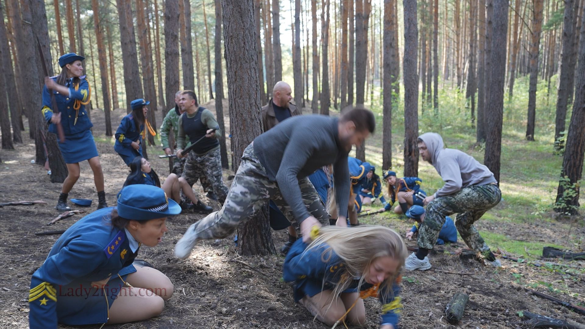 Lora, Luna, Michelle, and their fellow women soldiers march with pride—unaware they’re being led into a deadly trap. Outnumbered and outmatched, the squad faces a brutal ambush where every shot and strike is aimed at their stomachs. One by one, the women fall to relentless melee attacks, their courage crushed beneath the enemy’s strength. With no reinforcements to save them, the brave troops are left broken and defeated, their army wiped out in a devastating rout. The video is divided into several battle stories, with one scene recreating the Mohicans ambush shot-for-shot.