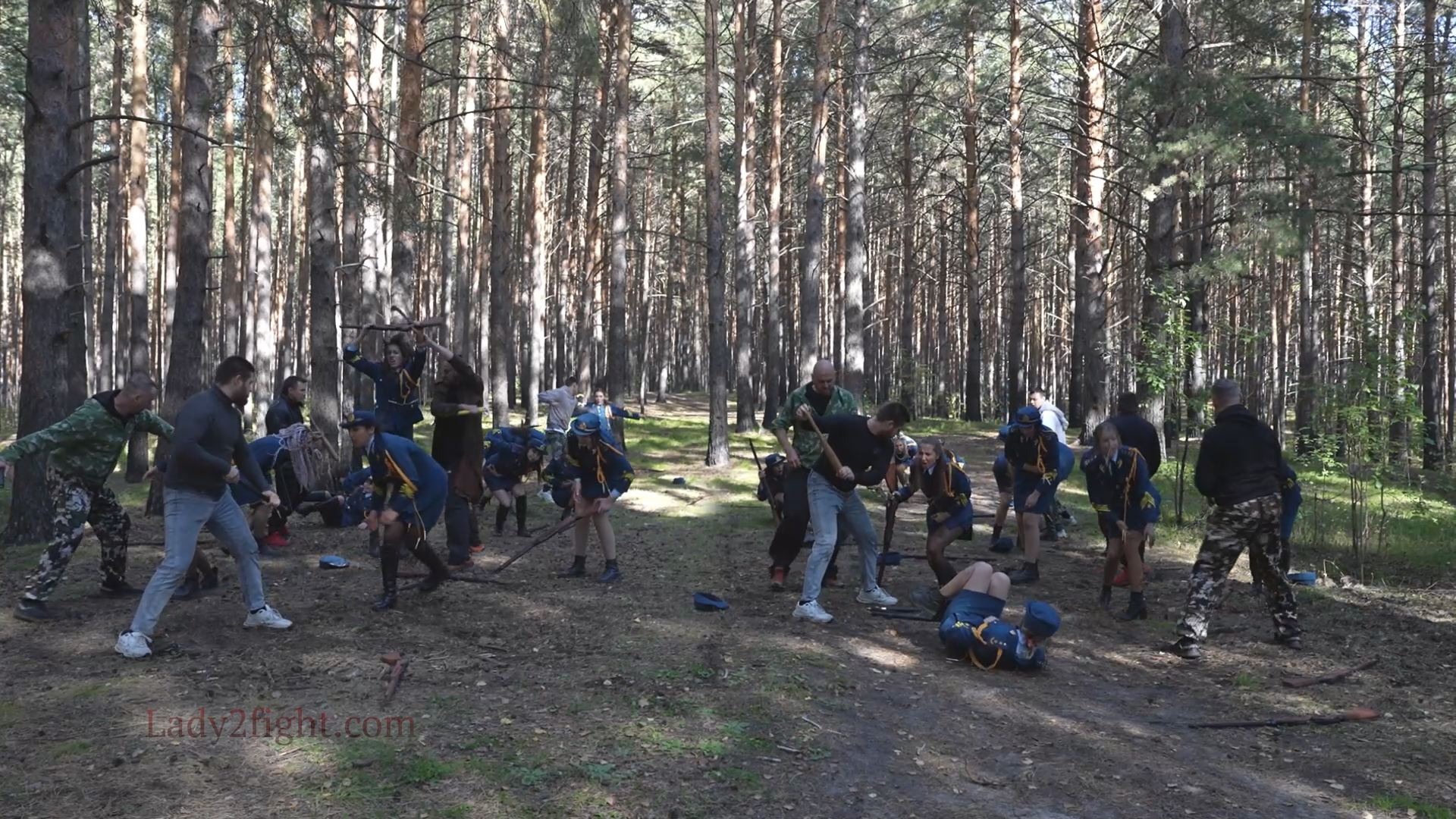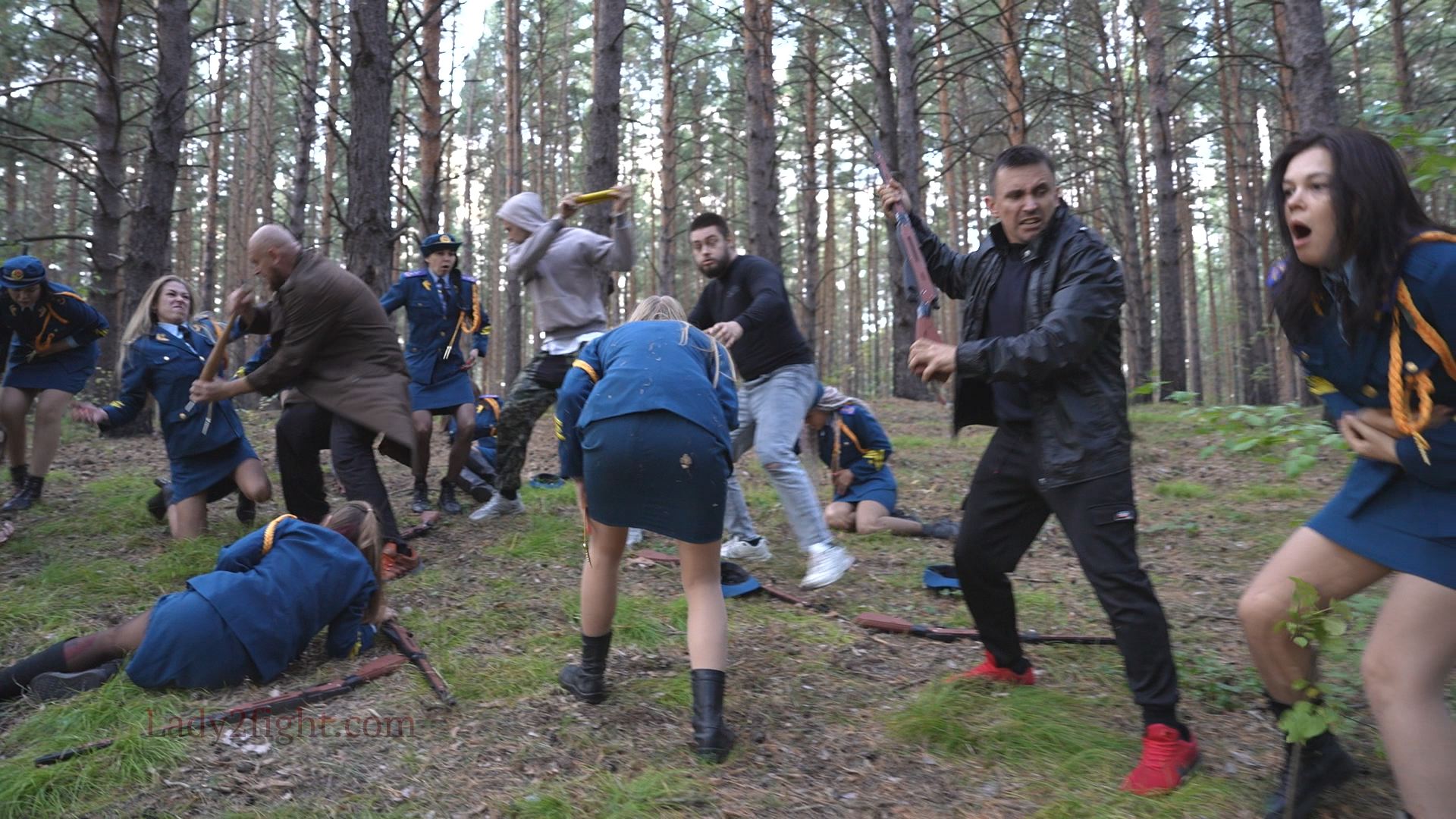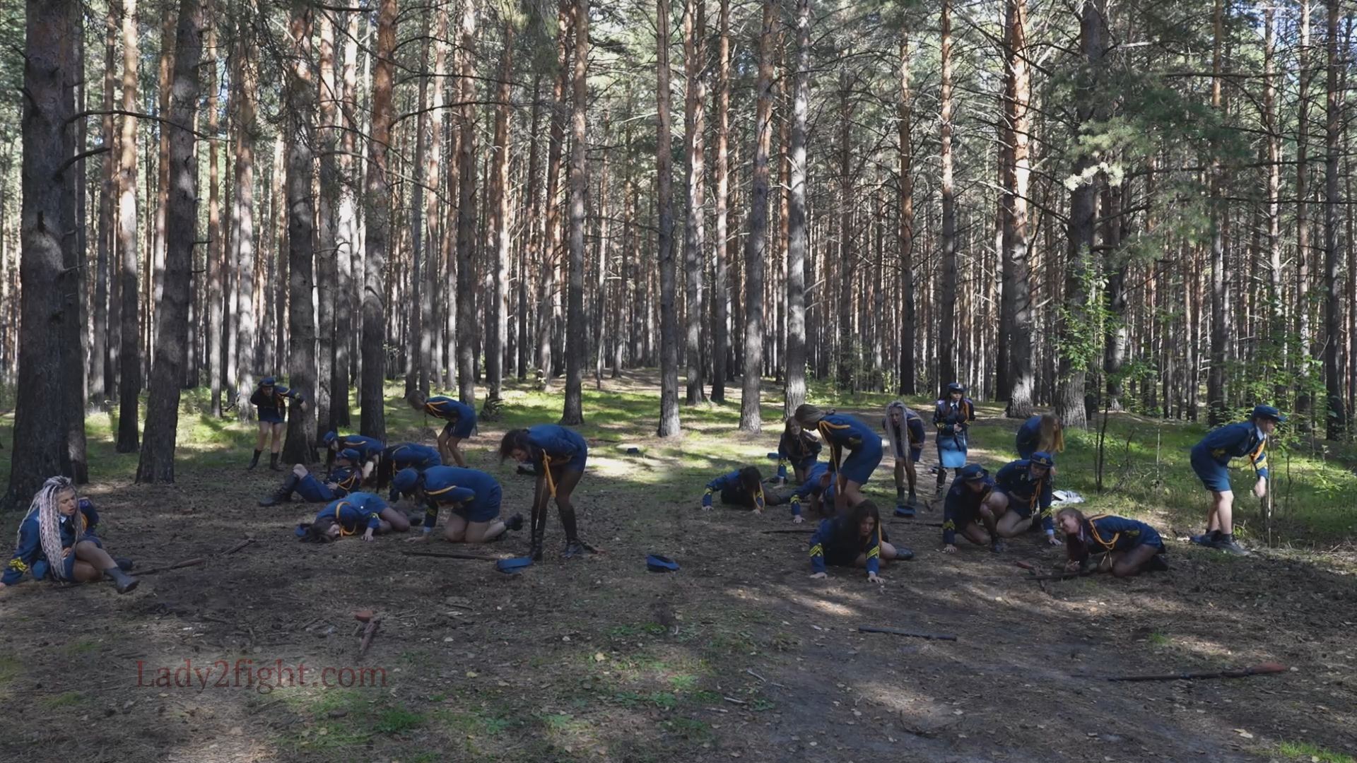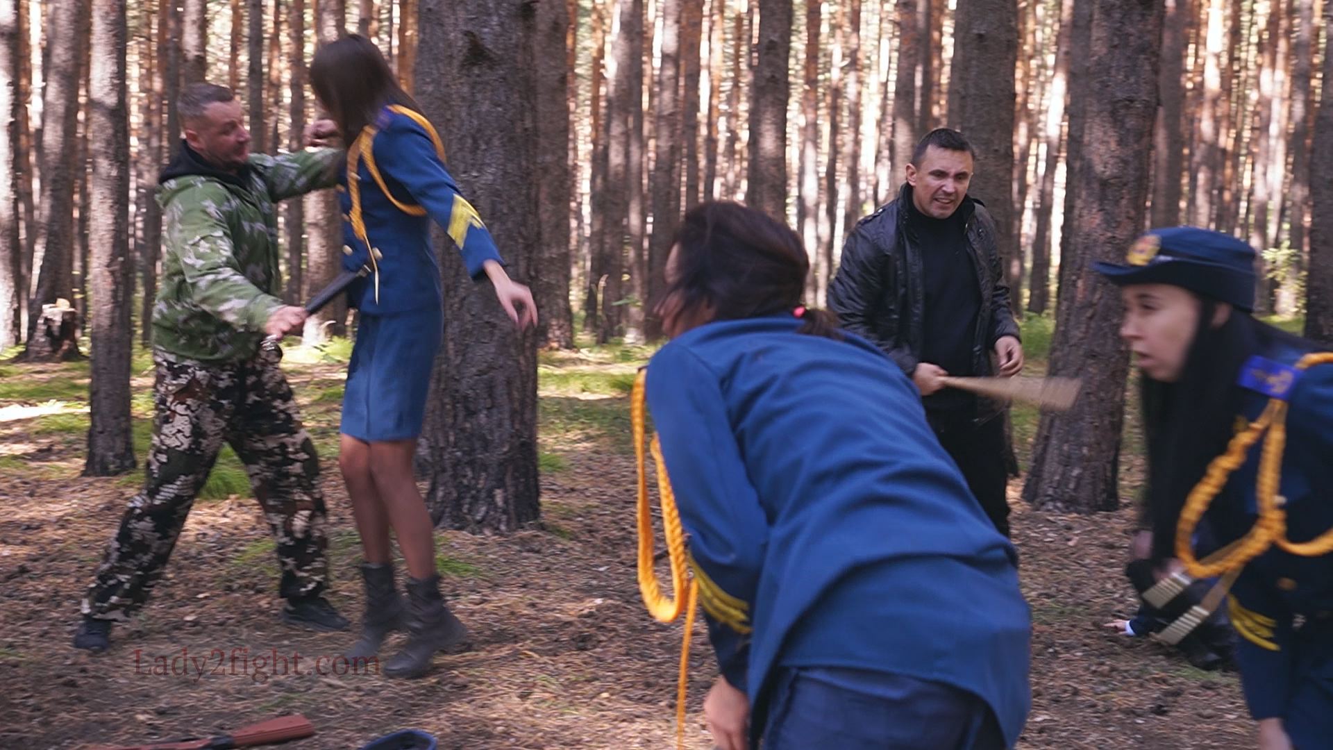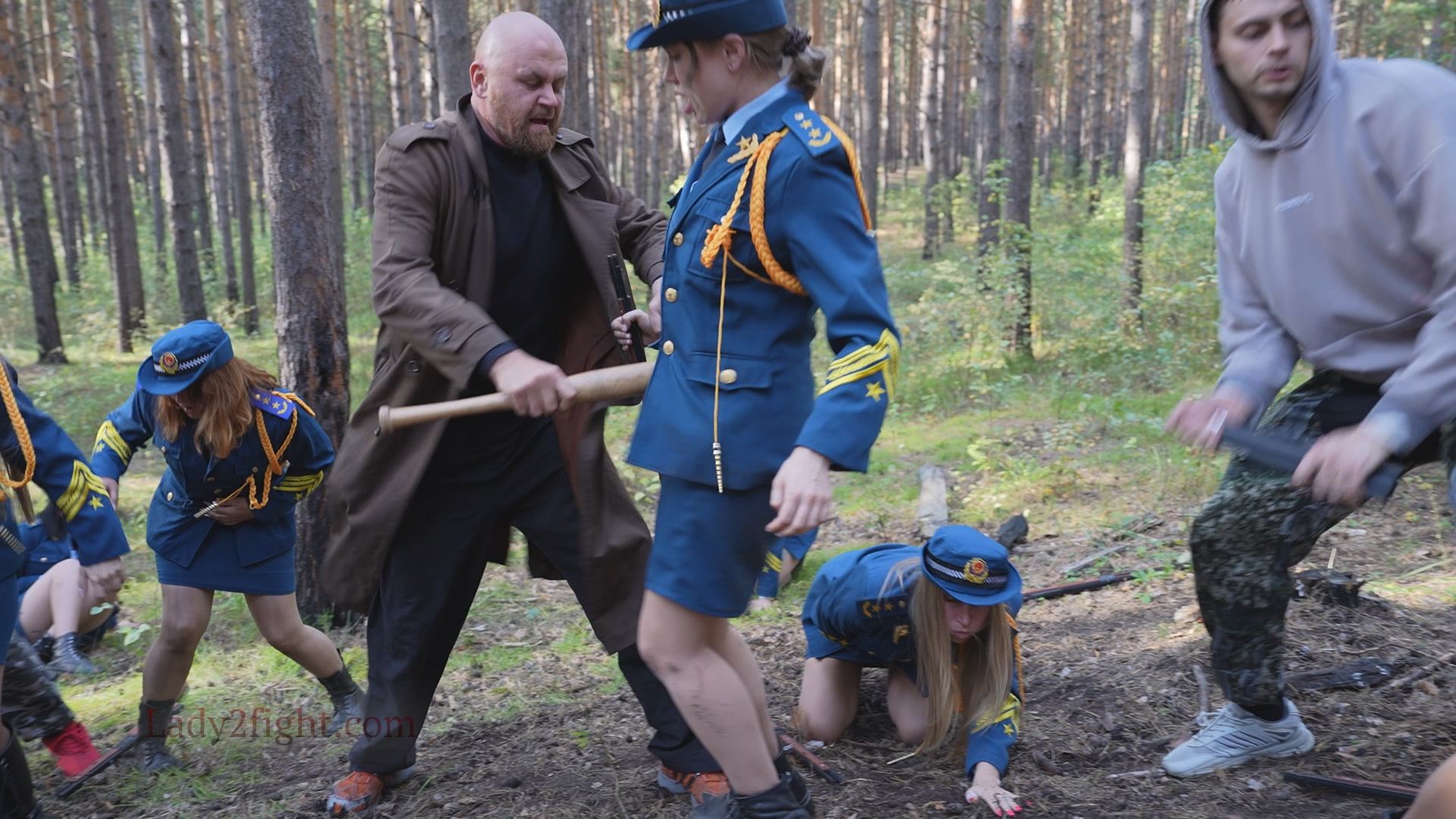 Lora, Luna, Michelle, and their fellow women soldiers march with pride—unaware they’re being led into a deadly trap. Outnumbered and outmatched, the squad faces a brutal ambush where every shot and strike is aimed at their stomachs. One by one, the women fall to relentless melee attacks, their courage crushed beneath the enemy’s strength. With no reinforcements to save them, the brave troops are left broken and defeated, their army wiped out in a devastating rout. The video is divided into several battle stories, with one scene recreating the Mohicans ambush shot-for-shot.
